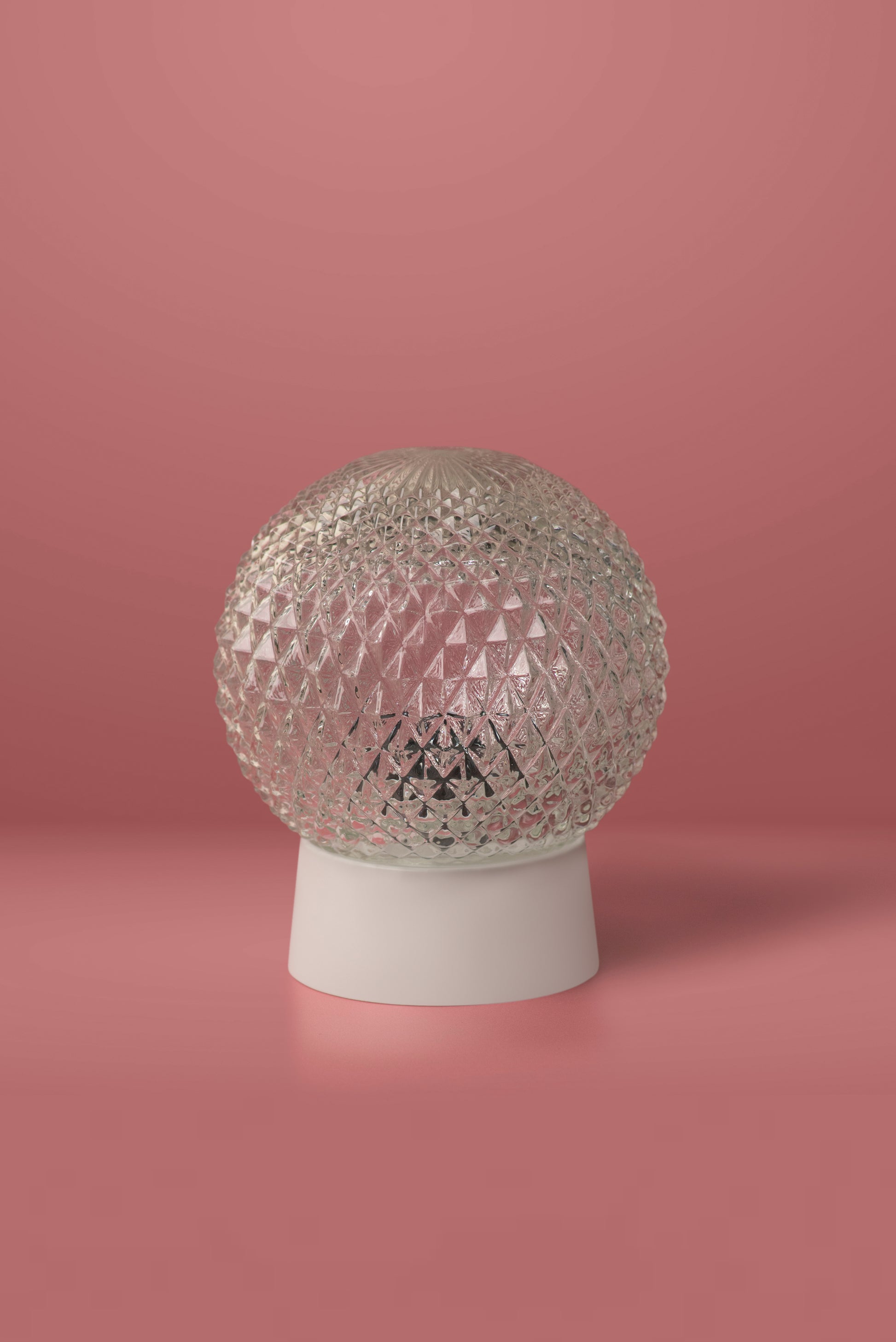 Het lambje Brigitte is een charmante bolvormige lampenkap uit de jaren 60, vervaardigd uit helder geperst glas met een geometrisch reliëf dat het licht op speelse wijze breekt. De symmetrische ruitstructuur en afgeronde vorm geven haar een moderne retro-uitstraling, terwijl de structuur zorgt voor een subtiel sprankelend effect zodra het licht aangaat. Dit lambje combineert stoerheid met elegantie en voelt zich thuis in elk interieur dat houdt van een knipoog naar het verleden.