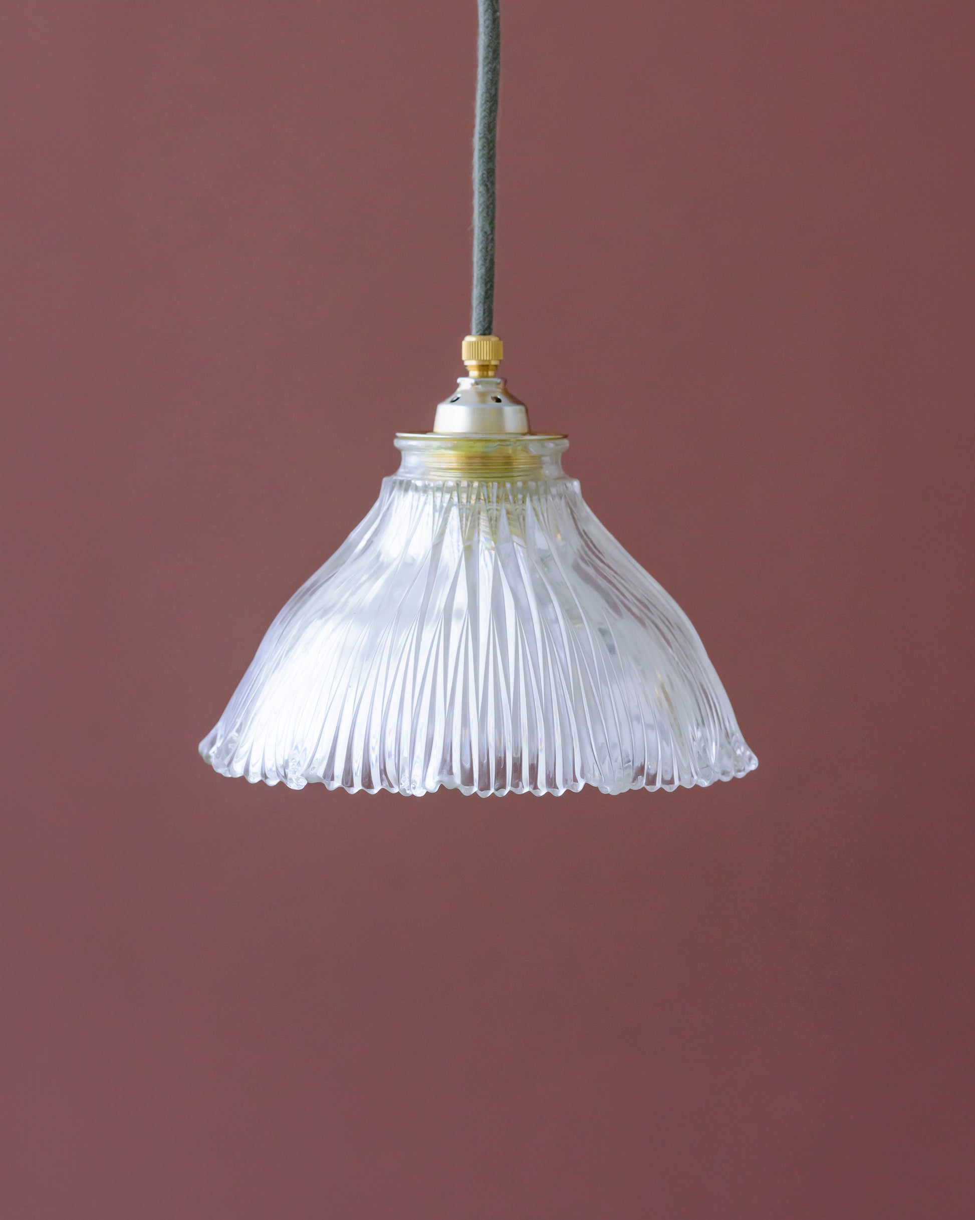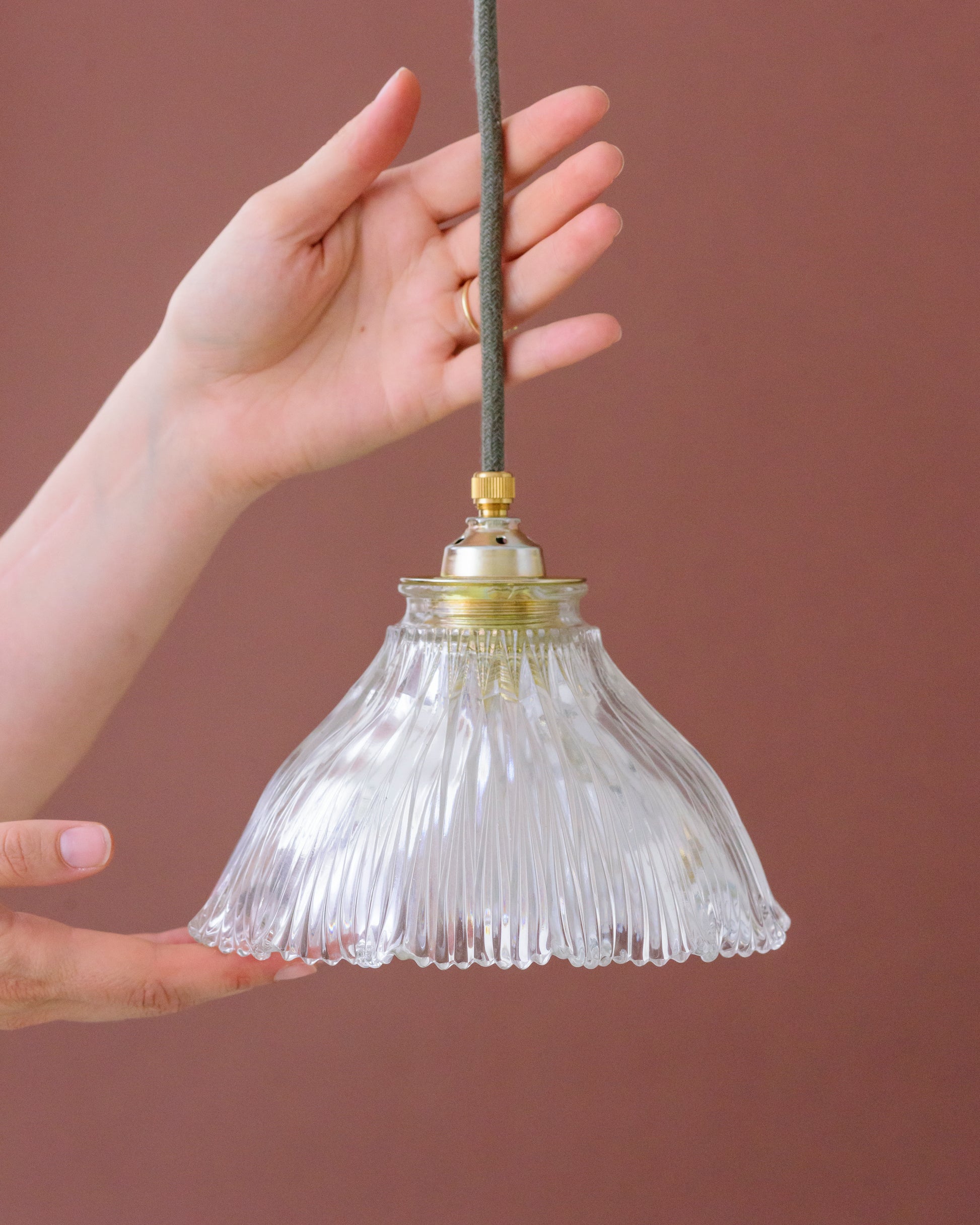 Clara is een elegante lampenkap met verticale ribbels in holophane glas. Dit glas verspreidt het licht op een bijzondere manier, waardoor de kamer een warme en sfeervolle uitstraling krijgt. Deze kap is perfect voor een woonkamer of studeerkamer en past goed in een tijdloos interieur.