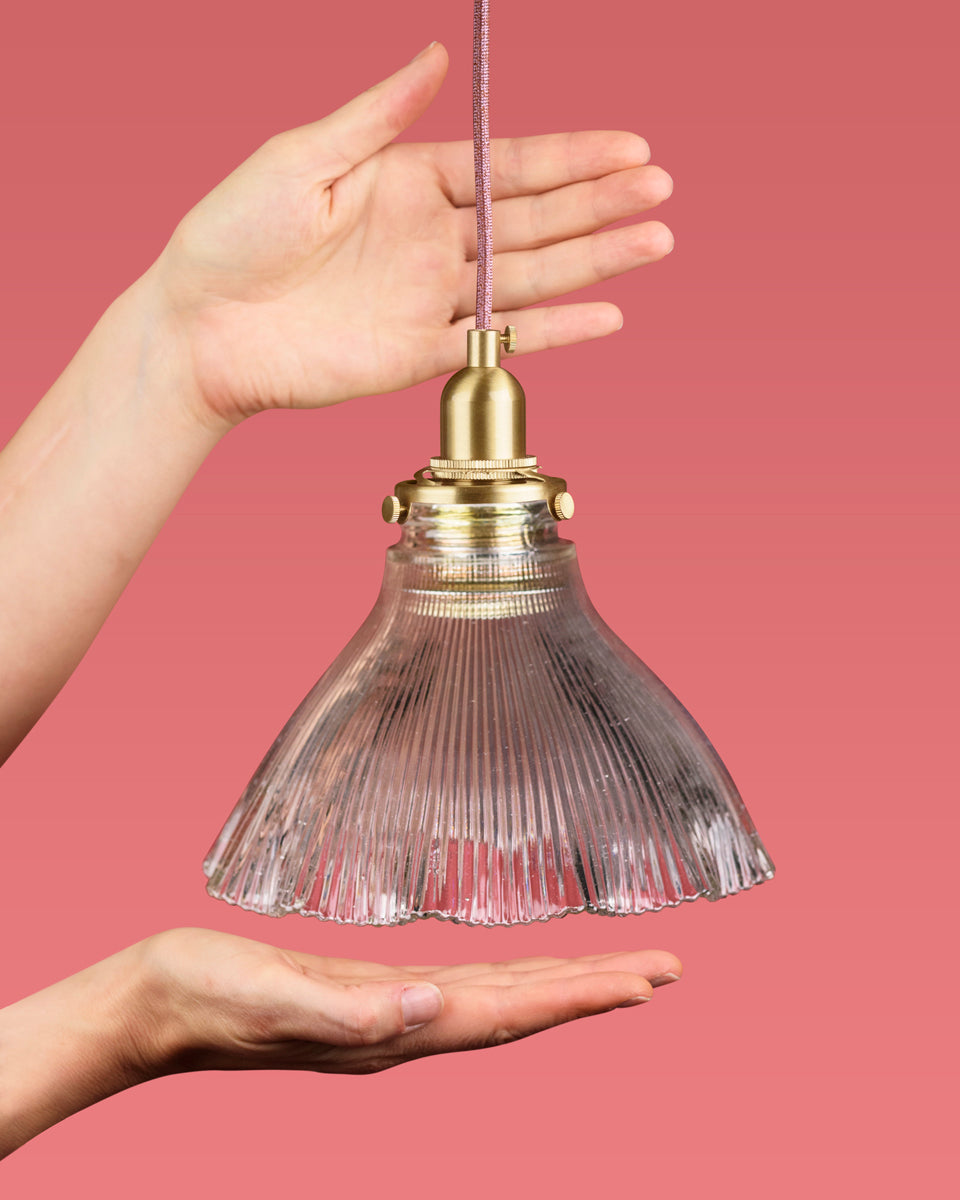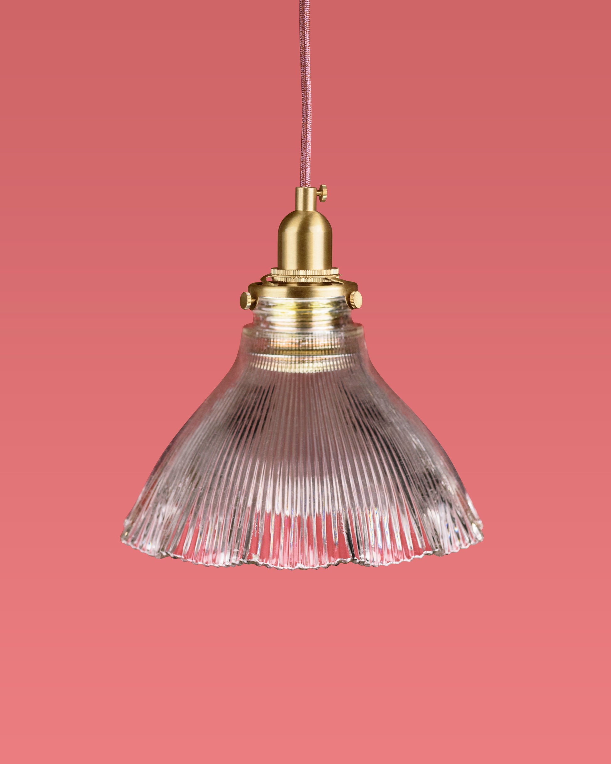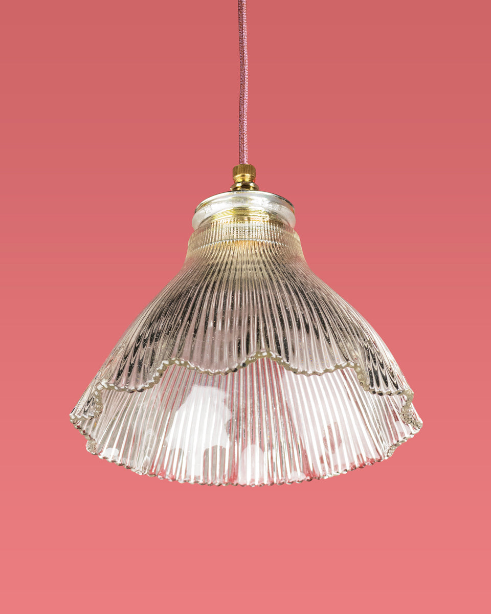 Het lambje Édith ademt de ingetogen elegantie van de jaren 40. Met haar verfijnde ribbelstructuur en gespreide kap van helder glas werpt ze een sprankelend, doch zacht licht. De onderzijde is licht gefacetteerd, wat zorgt voor een subtiel speels effect zodra het licht wordt ingeschakeld. Édith is een charmant detail boven een dressoir, in een klassieke hal of als romantisch accent in een vintage slaapkamer.