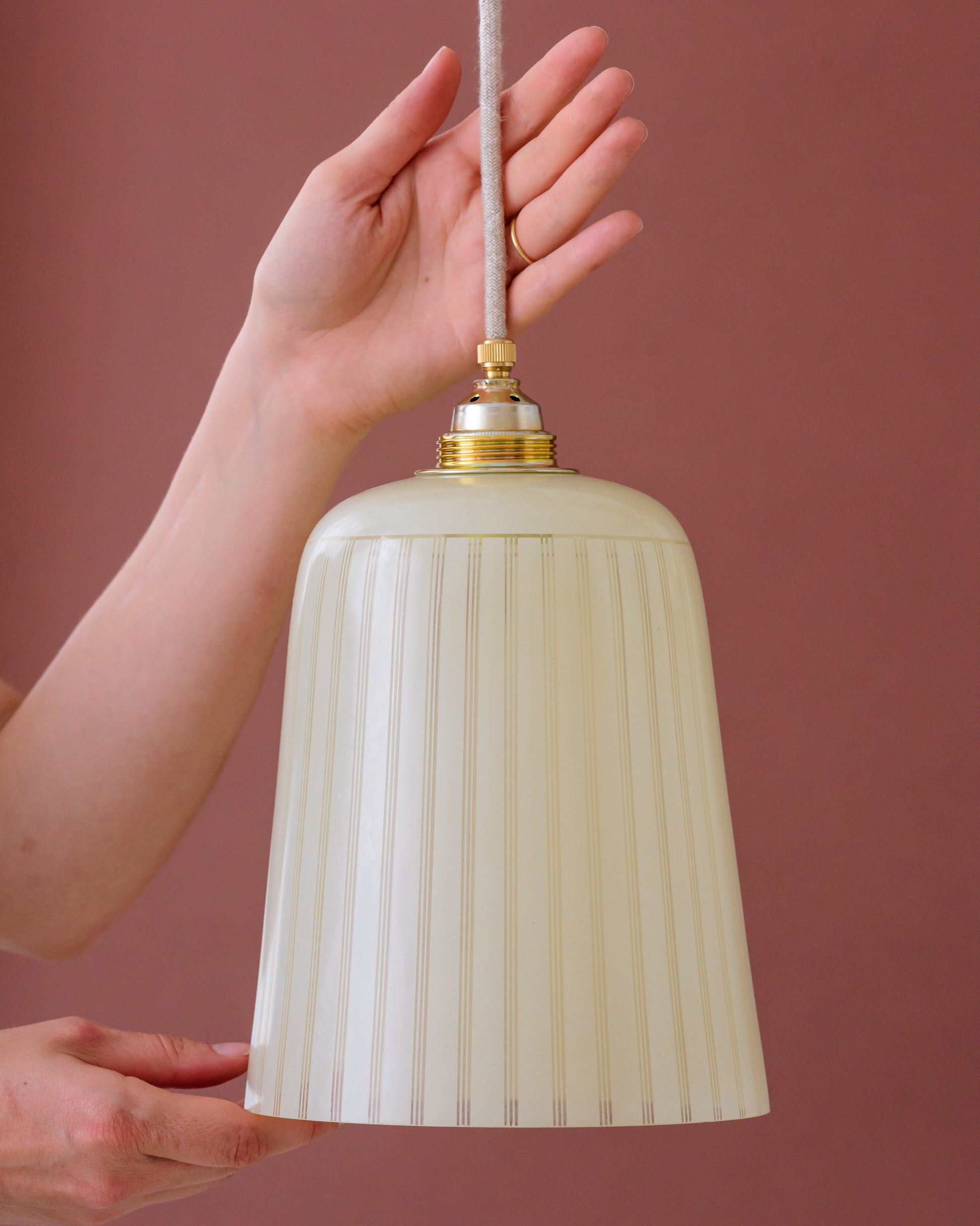 Bij Lambje geloven we dat zulke prachtige stukken de hoogste zorg verdienen. Daarom selecteren we onze lambjes met de grootste aandacht voor detail en kwaliteit. Terwijl de glazen lampenkappen zorgvuldig worden gecontroleerd en met de hand schoongemaakt, zorgen wij ervoor dat al het elektra, snoeren en plafonkapjes volledig nieuw zijn. Dit garandeert niet alleen de authenticiteit van het vintage design, maar ook de veiligheid en betrouwbaarheid van je lambje.