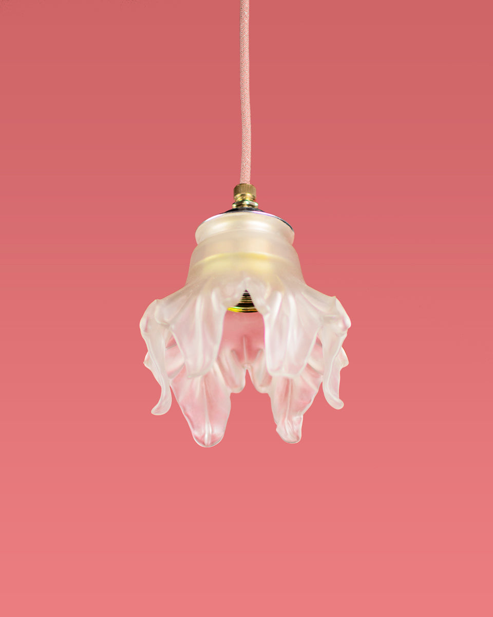 Het lambje Janna is een sierlijk art deco-lampje uit de jaren 20, gevormd als een bloemblaadje dat net opent. Het matte glas loopt vloeiend over in een transparant roze tint aan de randen, wat zorgt voor een subtiel kleuraccent wanneer het licht brandt. Janna verspreidt een zacht, dromerig licht en voelt zich perfect thuis in een romantische slaapkamer, boven een antieke toilettafel of in een nostalgische hal.