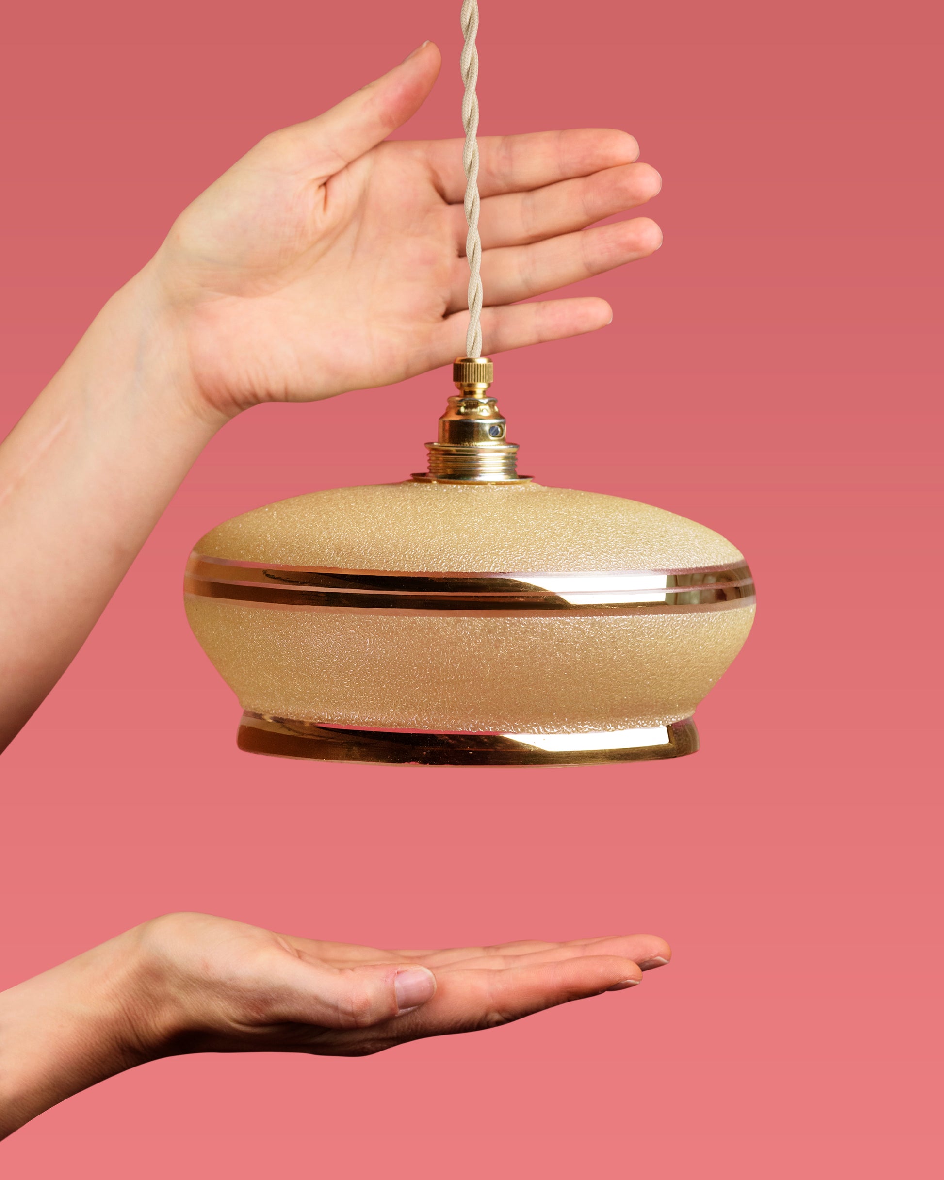 Bij Lambje geloven we dat zulke prachtige stukken de hoogste zorg verdienen. Daarom selecteren we onze lambjes met de grootste aandacht voor detail en kwaliteit. Terwijl de glazen lampenkappen zorgvuldig worden gecontroleerd en met de hand schoongemaakt, zorgen wij ervoor dat al het elektra, snoeren en plafonkapjes volledig nieuw zijn. Dit garandeert niet alleen de authenticiteit van het vintage design, maar ook de veiligheid en betrouwbaarheid van je lambje.