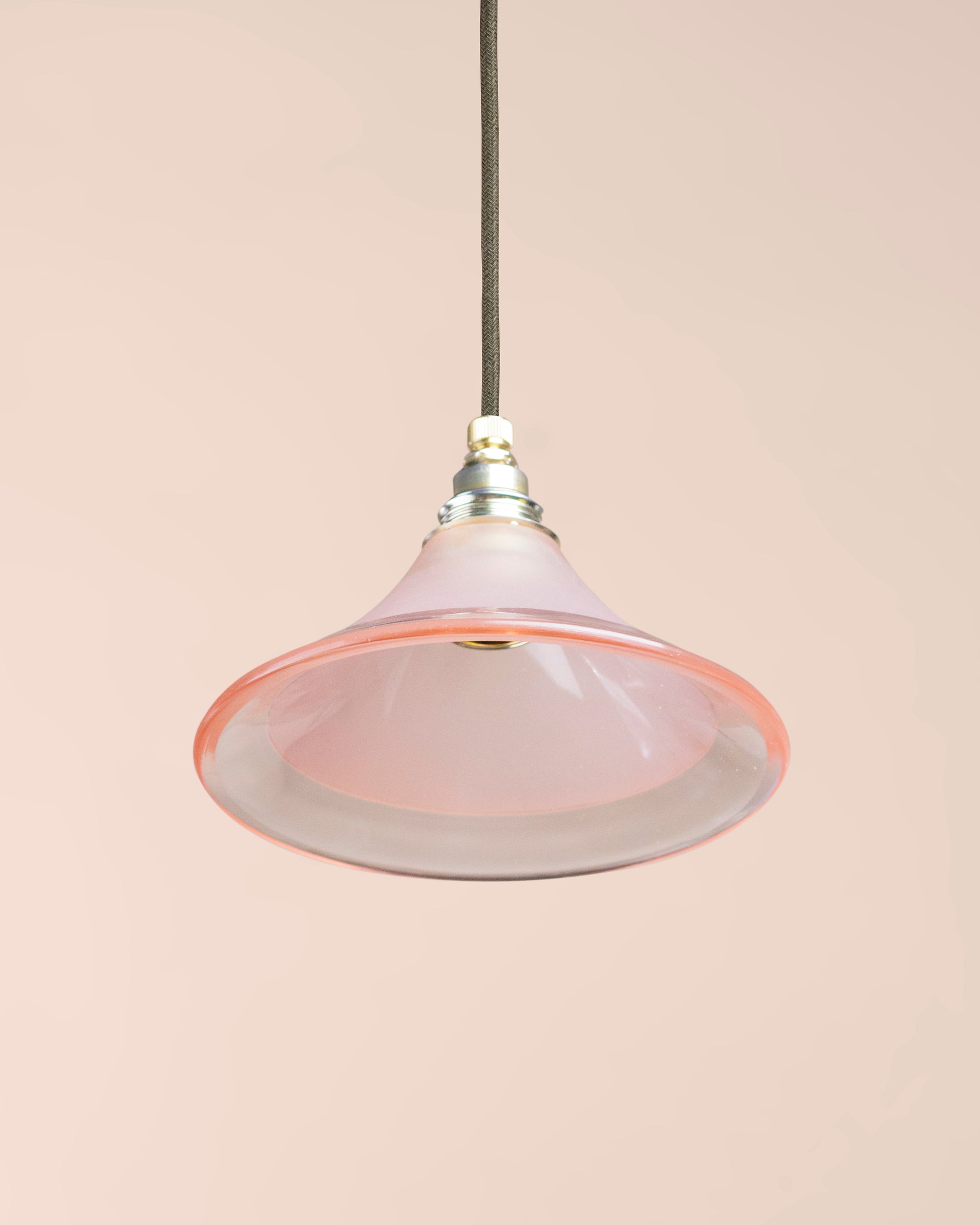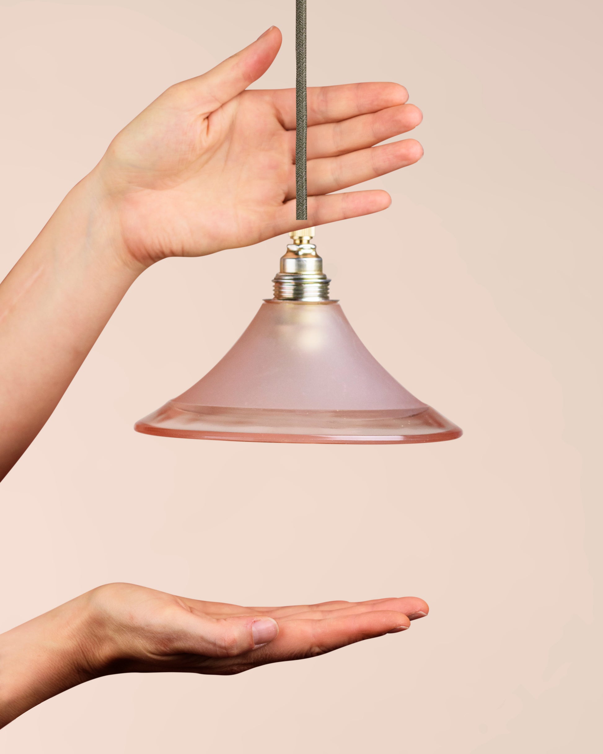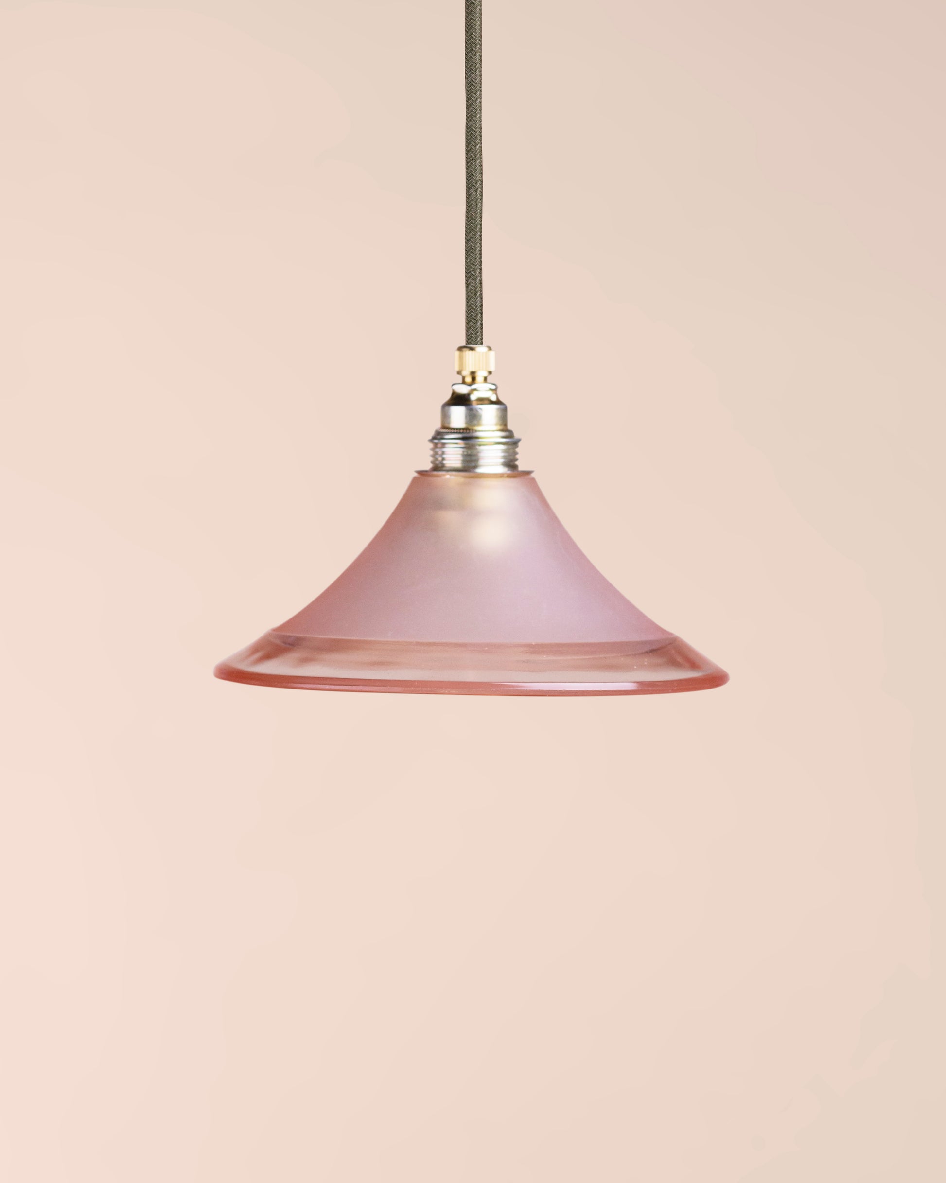 Het lambje Juline is een verfijnd ontwerp uit de jaren 20, gekenmerkt door zijn zachte, fluweelachtige matte afwerking en elegante belijning. De subtiele taps toelopende vorm met een heldere rand voegt een speelse lichtheid toe, terwijl het glas een diffuus en sfeervol licht verspreidt. Dit lambje past perfect in een klassieke of romantische inrichting en is ideaal voor boven een eettafel, in een hal of als charmante accentverlichting.
