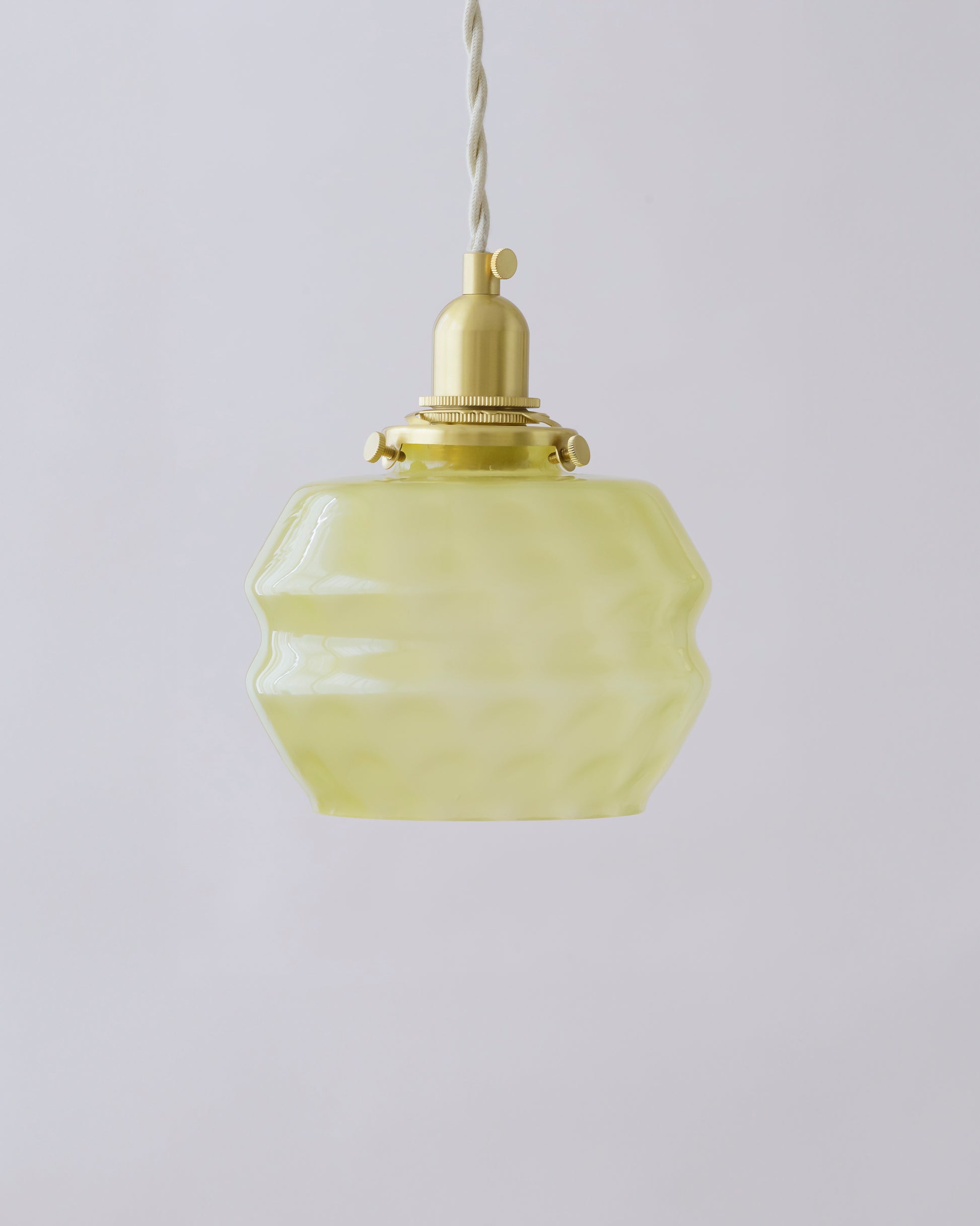 Lilian is een speelse lampenkap met een geribbelde textuur en zachte, gele tint. De vorm geeft een uniek lichteffect, ideaal voor een gezellige leeshoek of werkkamer.