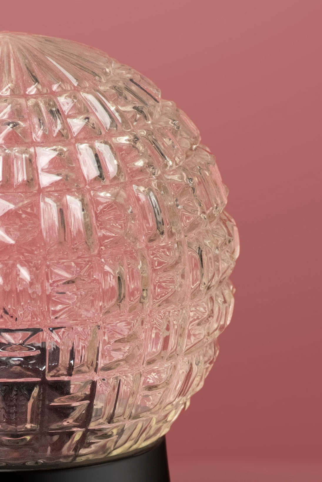 Het lambje Mirelle is een charmante bolvormige lampenkap uit de jaren 60, vervaardigd uit helder geperst glas met een geometrisch reliëf dat het licht op speelse wijze breekt. De symmetrische ruitstructuur en afgeronde vorm geven haar een moderne retro-uitstraling, terwijl de structuur zorgt voor een subtiel sprankelend effect zodra het licht aangaat. Dit lambje combineert stoerheid met elegantie en voelt zich thuis in elk interieur dat houdt van een knipoog naar het verleden.