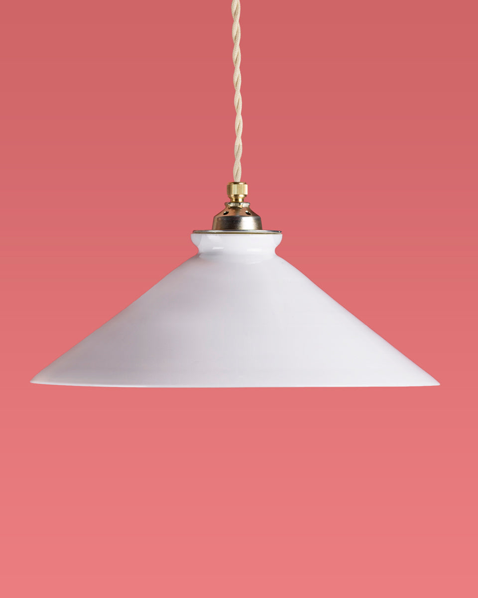 Het lambje Odessa is een stijlvolle eenvoud uit de jaren 60, met een strak conische vorm en gemaakt van zacht glanzend opaline glas. De gladde lijnen en witte kleur zorgen voor een heldere, rustige lichtverspreiding die moeiteloos opgaat in elk interieur. Odessa voelt zich thuis in een modernistische setting, een Scandinavisch geïnspireerde keuken of juist als tegenhanger in een meer eclectische ruimte.